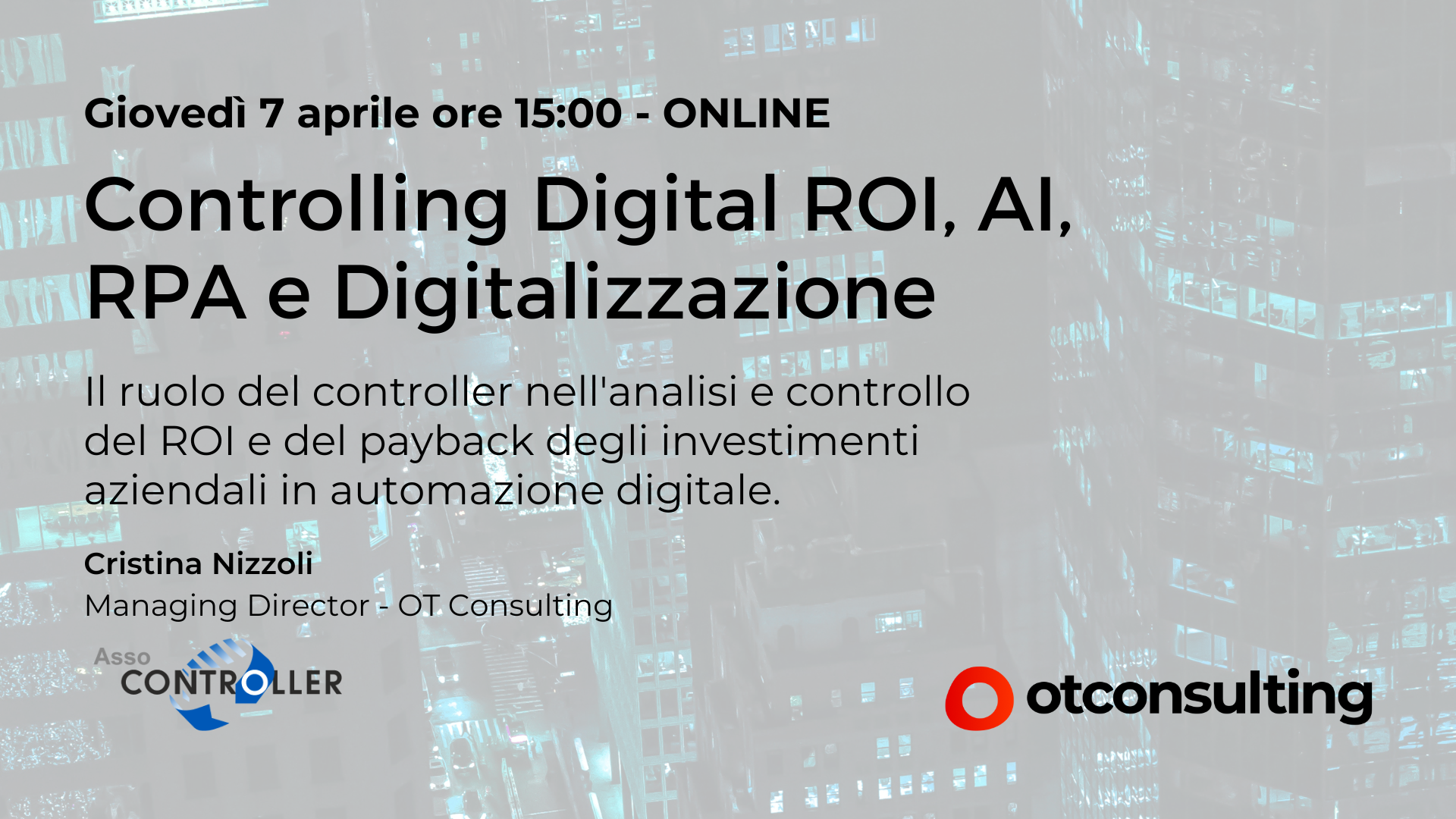 Il ruolo del Controller nella analisi e nel calcolo del ROI e del payback degli investimenti aziendali in automazione digitale è il tema del webinar organizzato da Assocontroller a cui OT Consulting parteciperà giovedì 7 aprile 2022 con un intervento dal titolo: Intelligent Process Automation a supporto delle attività di controlling e misurazione del ROI.